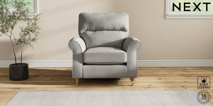 7.2.10 Ashford Highback Armchair Woven Chenille Easy Clean Light Grey Castor - Light | Made Click here to use our website with more accessibility support, for example screen readers
