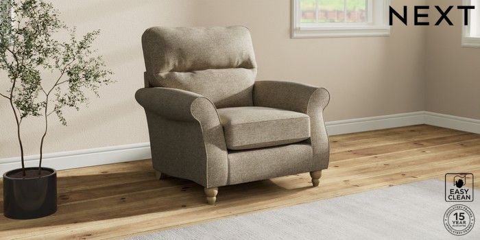 7.2.10 Ashford Highback Armchair Woven Chenille Easy Clean Mid Natural Low Turned - Light | Made Click here to use our website with more accessibility support, for example screen readers