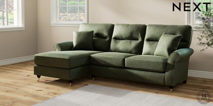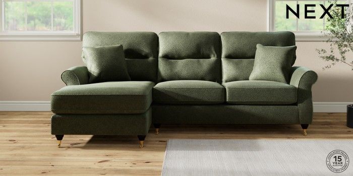 7.2.10 Ashford Highback Medium Sofa Chaise - Left Hand Boucle Chenille Dark Moss Green Castor - Dark | Made Click here to use our website with more accessibility support, for example screen readers