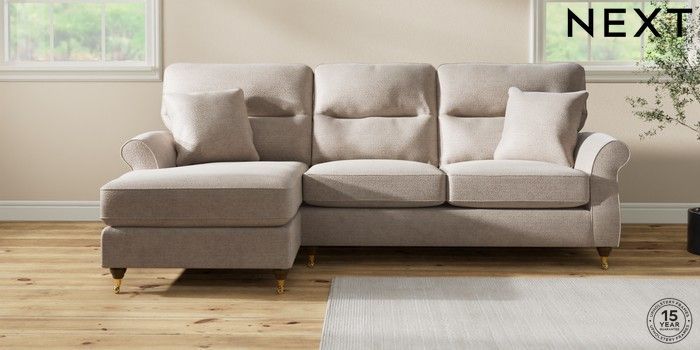 7.2.10 Ashford Highback Medium Sofa Chaise - Left Hand Boucle Chenille Light Natural Castor - Mid | Made Click here to use our website with more accessibility support, for example screen readers