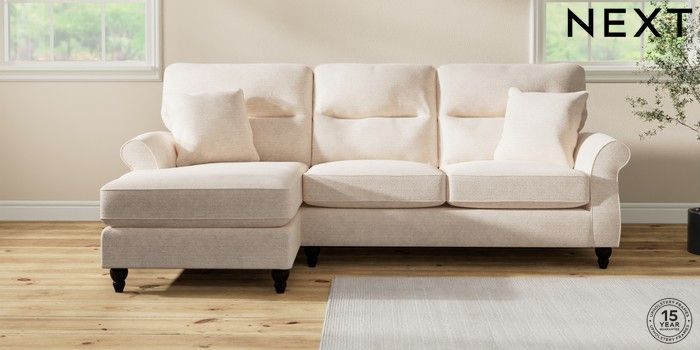 7.2.10 Ashford Highback Medium Sofa Chaise - Left Hand Boucle Chenille Oyster Low Turned - Dark | Made Click here to use our website with more accessibility support, for example screen readers
