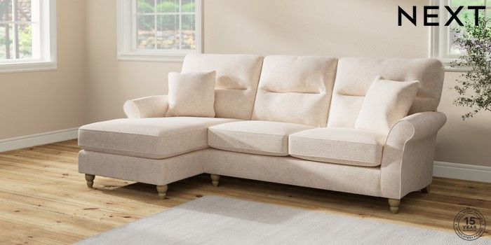 7.2.10 Ashford Highback Medium Sofa Chaise - Left Hand Boucle Chenille Oyster Low Turned - Light | Made Click here to use our website with more accessibility support, for example screen readers