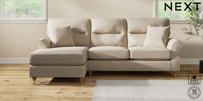 7.2.10 Ashford Highback Medium Sofa Chaise - Left Hand Boucle Weave Easy Clean Dark Natural Castor - Light | Made Click here to use our website with more accessibility support, for example screen readers
