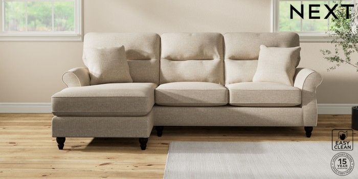 7.2.10 Ashford Highback Medium Sofa Chaise - Left Hand Boucle Weave Easy Clean Dark Natural Low Turned - Dark | Made Click here to use our website with more accessibility support, for example screen readers