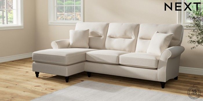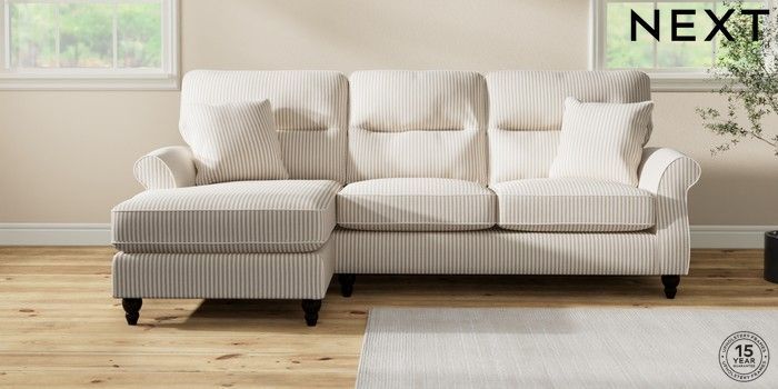 7.2.10 Ashford Highback Medium Sofa Chaise - Left Hand Chenille Stripe Natural Low Turned - Dark | Made Click here to use our website with more accessibility support, for example screen readers