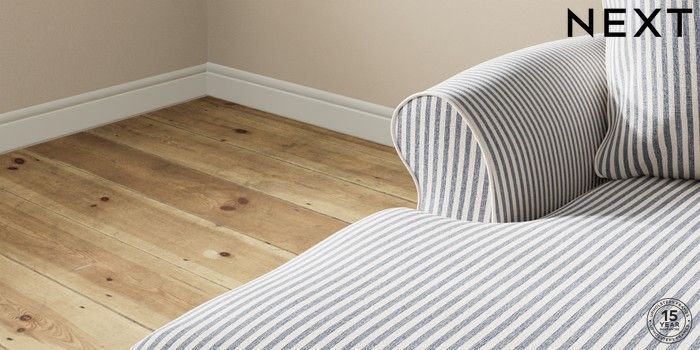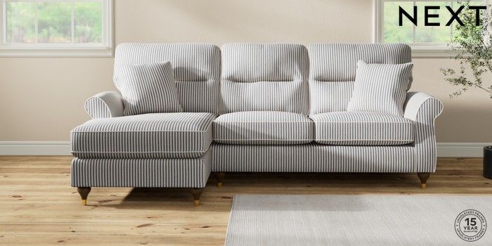 7.2.10 Ashford Highback Medium Sofa Chaise - Left Hand Chenille Stripe Slate Blue Modern Turned Metal Cap - Mid | Made Click here to use our website with more accessibility support, for example screen readers