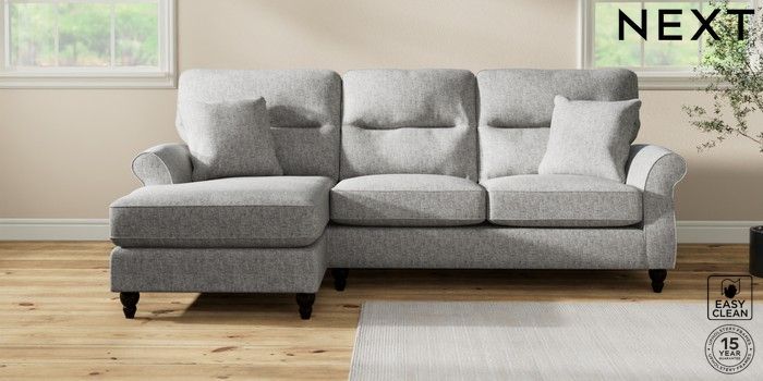 7.2.10 Ashford Highback Medium Sofa Chaise - Left Hand Chunky Boucle Easy Clean Light Grey Low Turned - Dark | Made Click here to use our website with more accessibility support, for example screen readers