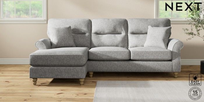 7.2.10 Ashford Highback Medium Sofa Chaise - Left Hand Chunky Boucle Easy Clean Light Grey Low Turned - Light | Made Click here to use our website with more accessibility support, for example screen readers