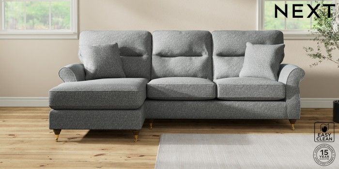 7.2.10 Ashford Highback Medium Sofa Chaise - Left Hand Chunky Boucle Easy Clean Mid Grey Castor - Mid | Made Click here to use our website with more accessibility support, for example screen readers