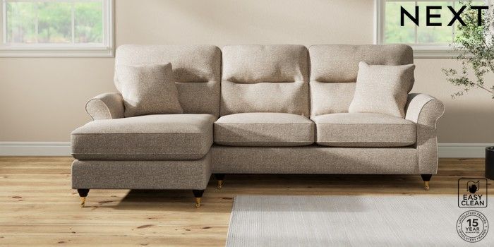 7.2.10 Ashford Highback Medium Sofa Chaise - Left Hand Chunky Boucle Easy Clean Mid Natural Castor - Dark | Made Click here to use our website with more accessibility support, for example screen readers