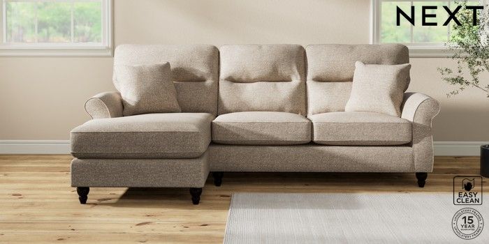 7.2.10 Ashford Highback Medium Sofa Chaise - Left Hand Chunky Boucle Easy Clean Mid Natural Low Turned - Dark | Made Click here to use our website with more accessibility support, for example screen readers