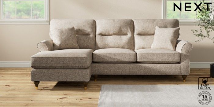 7.2.10 Ashford Highback Medium Sofa Chaise - Left Hand Chunky Boucle Easy Clean Mid Natural Modern Turned Metal Cap - Mid | Made Click here to use our website with more accessibility support, for example screen readers