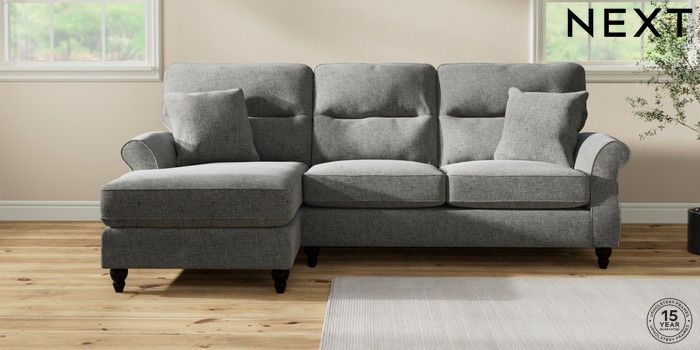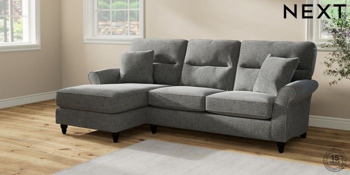 7.2.10 Ashford Highback Medium Sofa Chaise - Left Hand Chunky Chenille Dark Grey Low Turned - Dark | Made Click here to use our website with more accessibility support, for example screen readers