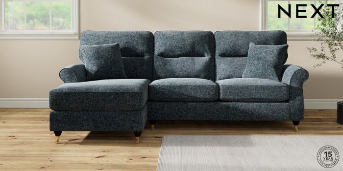 7.2.10 Ashford Highback Medium Sofa Chaise - Left Hand Chunky Chenille Dark Navy Blue Castor - Dark | Made Click here to use our website with more accessibility support, for example screen readers