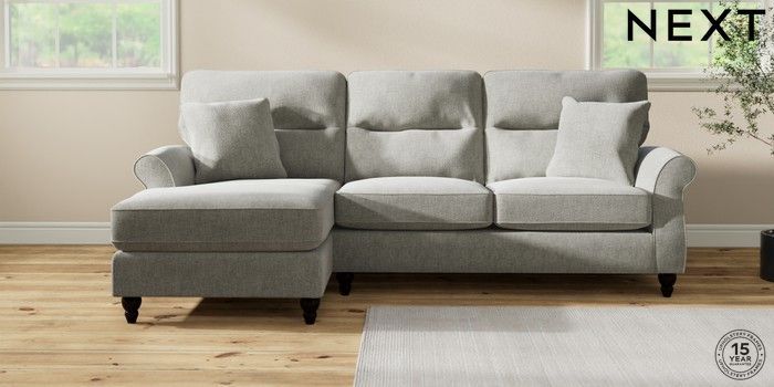 7.2.10 Ashford Highback Medium Sofa Chaise - Left Hand Chunky Chenille Light Grey Low Turned - Dark | Made Click here to use our website with more accessibility support, for example screen readers