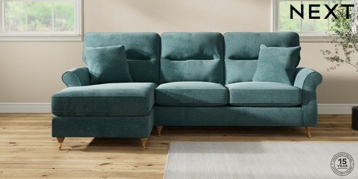 7.2.10 Ashford Highback Medium Sofa Chaise - Left Hand Chunky Chenille Mid Teal Green Castor - Light | Made Click here to use our website with more accessibility support, for example screen readers