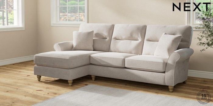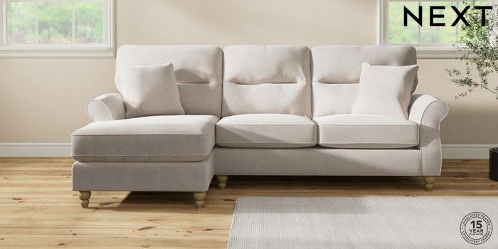 7.2.10 Ashford Highback Medium Sofa Chaise - Left Hand Chunky Chenille Oyster Low Turned - Light | Made Click here to use our website with more accessibility support, for example screen readers