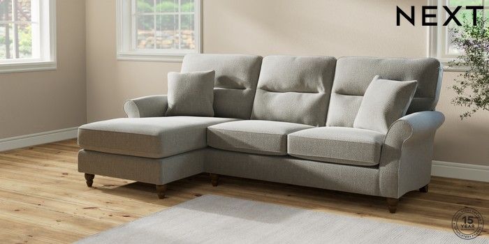7.2.10 Ashford Highback Medium Sofa Chaise - Left Hand Chunky Texture Dove Low Turned - Mid | Made Click here to use our website with more accessibility support, for example screen readers