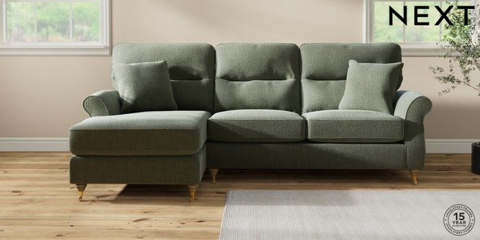 7.2.10 Ashford Highback Medium Sofa Chaise - Left Hand Chunky Texture Mid Forest Green Castor - Light | Made Click here to use our website with more accessibility support, for example screen readers