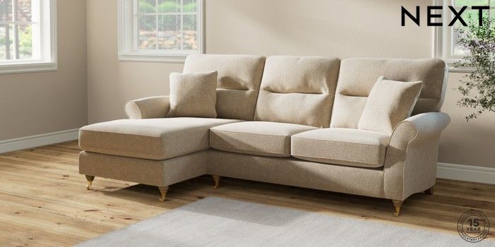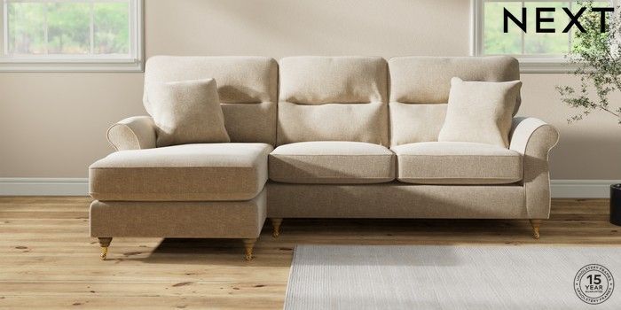 7.2.10 Ashford Highback Medium Sofa Chaise - Left Hand Chunky Weave Cream Castor - Light | Made Click here to use our website with more accessibility support, for example screen readers
