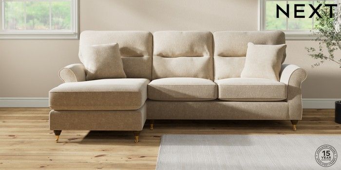 7.2.10 Ashford Highback Medium Sofa Chaise - Left Hand Chunky Weave Cream Castor - Mid | Made Click here to use our website with more accessibility support, for example screen readers