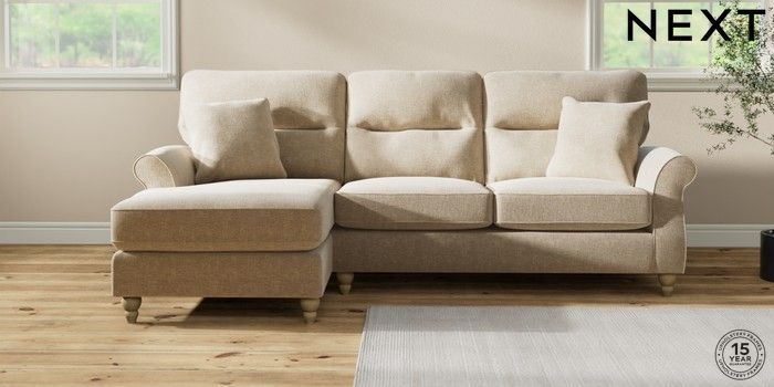 7.2.10 Ashford Highback Medium Sofa Chaise - Left Hand Chunky Weave Cream Low Turned - Light | Made Click here to use our website with more accessibility support, for example screen readers