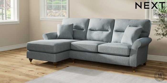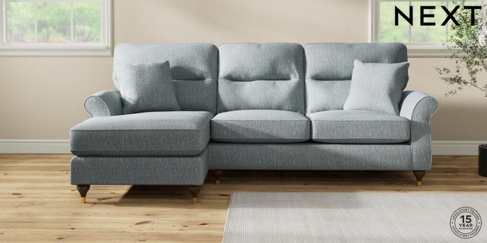 7.2.10 Ashford Highback Medium Sofa Chaise - Left Hand Chunky Weave Mid Blue Modern Turned Metal Cap - Mid | Made Click here to use our website with more accessibility support, for example screen readers