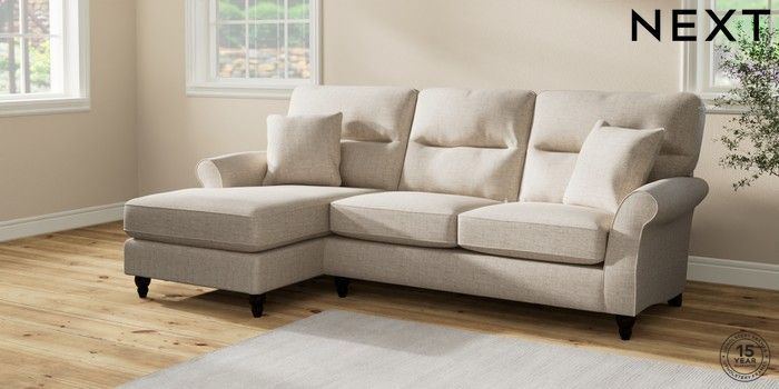 7.2.10 Ashford Highback Medium Sofa Chaise - Left Hand Chunky Weave Mid Natural Low Turned - Dark | Made Click here to use our website with more accessibility support, for example screen readers