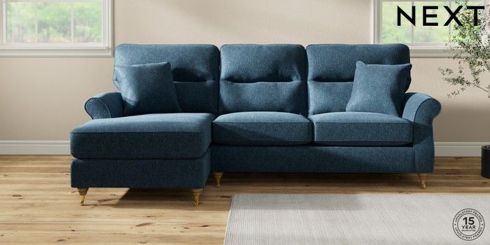 7.2.10 Ashford Highback Medium Sofa Chaise - Left Hand Cotswold Chenille Dark Blue Castor - Light | Made Click here to use our website with more accessibility support, for example screen readers