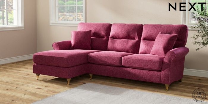 7.2.10 Ashford Highback Medium Sofa Chaise - Left Hand Cotswold Chenille Dark Raspberry Pink Castor - Light | Made Click here to use our website with more accessibility support, for example screen readers