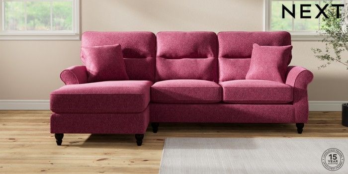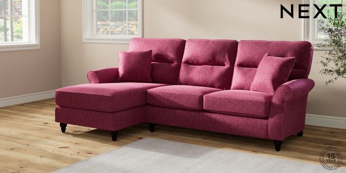 7.2.10 Ashford Highback Medium Sofa Chaise - Left Hand Cotswold Chenille Dark Raspberry Pink Low Turned - Dark | Made Click here to use our website with more accessibility support, for example screen readers