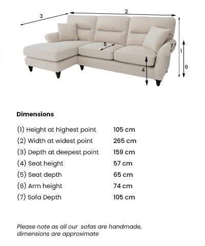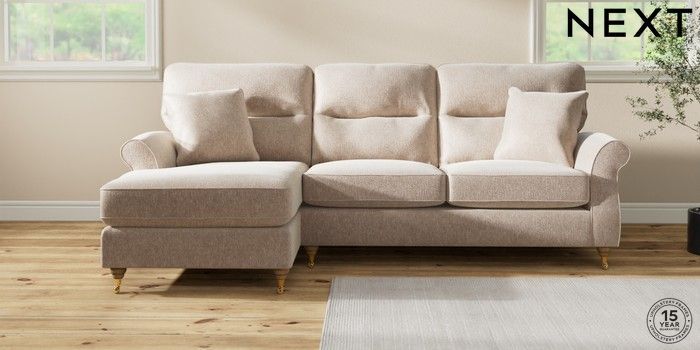 7.2.10 Ashford Highback Medium Sofa Chaise - Left Hand Cotswold Chenille Light Natural Castor - Light | Made Click here to use our website with more accessibility support, for example screen readers
