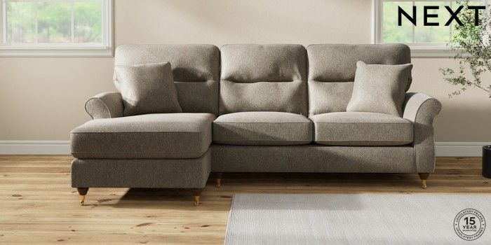 7.2.10 Ashford Highback Medium Sofa Chaise - Left Hand Cotswold Chenille Mid Mink Brown Castor - Mid | Made Click here to use our website with more accessibility support, for example screen readers