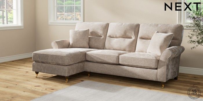 7.2.10 Ashford Highback Medium Sofa Chaise - Left Hand Distressed Velour Mid Natural Castor - Mid | Made Click here to use our website with more accessibility support, for example screen readers
