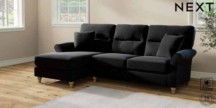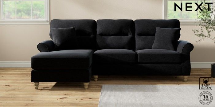 7.2.10 Ashford Highback Medium Sofa Chaise - Left Hand Fine Chenille Easy Clean Black Low Turned - Light | Made Click here to use our website with more accessibility support, for example screen readers