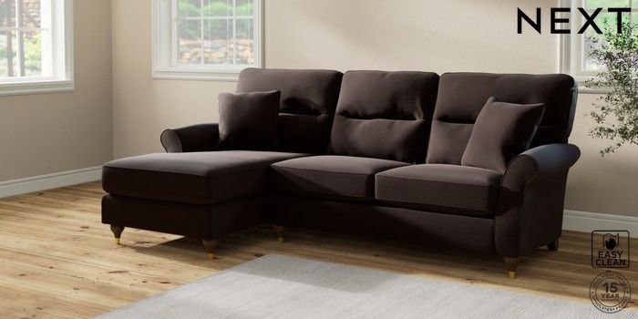 7.2.10 Ashford Highback Medium Sofa Chaise - Left Hand Fine Chenille Easy Clean Chocolate Brown Modern Turned Metal Cap - Mid | Made Click here to use our website with more accessibility support, for example screen readers