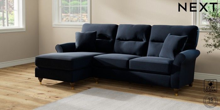 7.2.10 Ashford Highback Medium Sofa Chaise - Left Hand Fine Chenille Easy Clean Dark Navy Blue Modern Turned Metal Cap - Mid | Made Click here to use our website with more accessibility support, for example screen readers