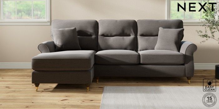 7.2.10 Ashford Highback Medium Sofa Chaise - Left Hand Fine Chenille Easy Clean Dark Smoke Grey Castor - Mid | Made Click here to use our website with more accessibility support, for example screen readers
