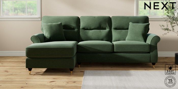 7.2.10 Ashford Highback Medium Sofa Chaise - Left Hand Fine Chenille Easy Clean Mid Khaki Green Castor - Dark | Made Click here to use our website with more accessibility support, for example screen readers