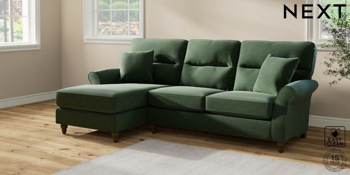7.2.10 Ashford Highback Medium Sofa Chaise - Left Hand Fine Chenille Easy Clean Mid Khaki Green Low Turned - Mid | Made Click here to use our website with more accessibility support, for example screen readers