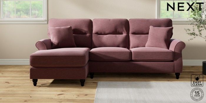 7.2.10 Ashford Highback Medium Sofa Chaise - Left Hand Fine Chenille Easy Clean Mid Mulberry Purple Low Turned - Dark | Made Click here to use our website with more accessibility support, for example screen readers