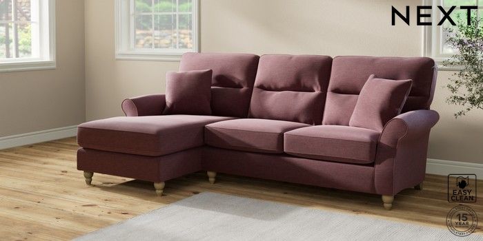 7.2.10 Ashford Highback Medium Sofa Chaise - Left Hand Fine Chenille Easy Clean Mid Mulberry Purple Low Turned - Light | Made Click here to use our website with more accessibility support, for example screen readers