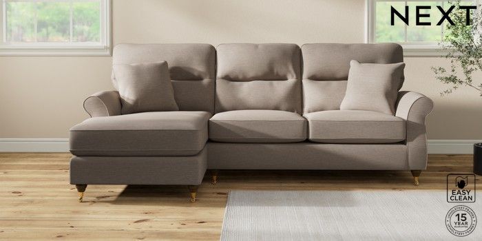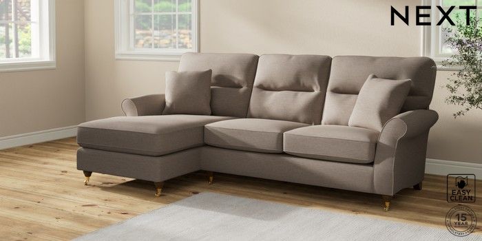 7.2.10 Ashford Highback Medium Sofa Chaise - Left Hand Fine Chenille Easy Clean Mid Taupe Brown Castor - Mid | Made Click here to use our website with more accessibility support, for example screen readers