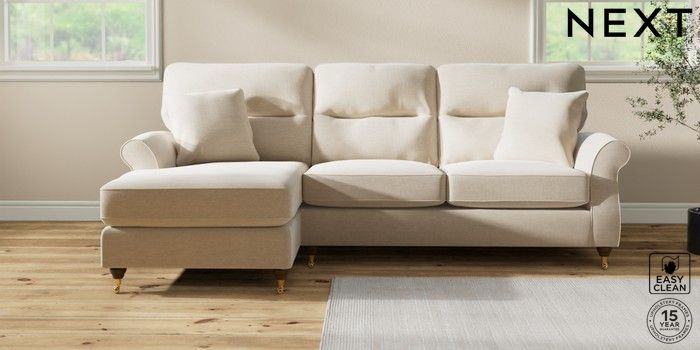 7.2.10 Ashford Highback Medium Sofa Chaise - Left Hand Fine Chenille Easy Clean Oyster Castor - Mid | Made Click here to use our website with more accessibility support, for example screen readers