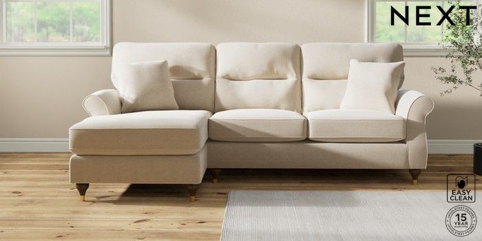 7.2.10 Ashford Highback Medium Sofa Chaise - Left Hand Fine Chenille Easy Clean Oyster Modern Turned Metal Cap - Mid | Made Click here to use our website with more accessibility support, for example screen readers