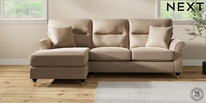 7.2.10 Ashford Highback Medium Sofa Chaise - Left Hand Luxe Chenille Mid Camel Beige Castor - Dark | Made Click here to use our website with more accessibility support, for example screen readers