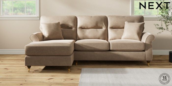 7.2.10 Ashford Highback Medium Sofa Chaise - Left Hand Luxe Chenille Mid Camel Beige Castor - Mid | Made Click here to use our website with more accessibility support, for example screen readers