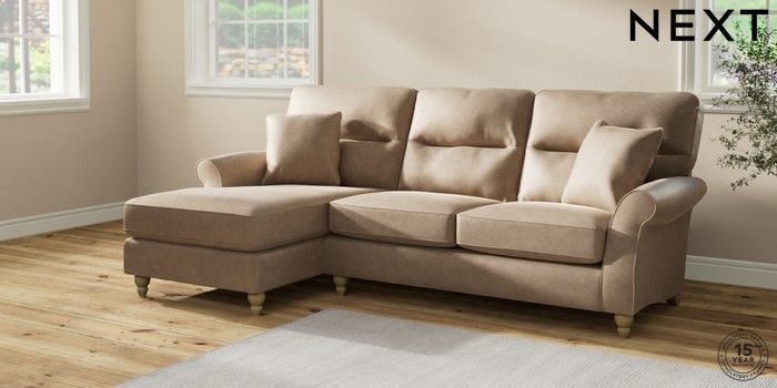 7.2.10 Ashford Highback Medium Sofa Chaise - Left Hand Luxe Chenille Mid Camel Beige Low Turned - Light | Made Click here to use our website with more accessibility support, for example screen readers