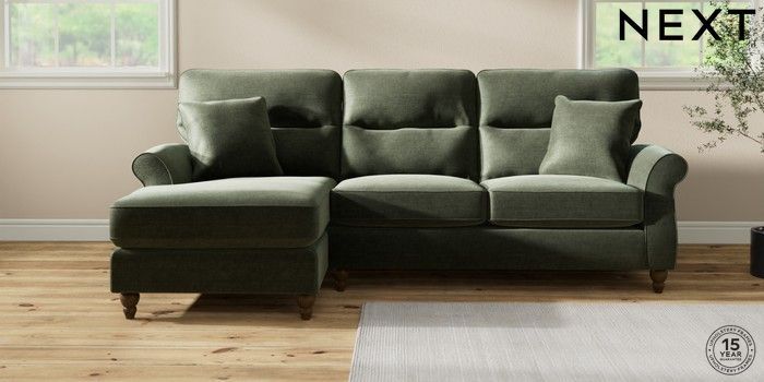 7.2.10 Ashford Highback Medium Sofa Chaise - Left Hand Luxe Chenille Mid Green Low Turned - Mid | Made Click here to use our website with more accessibility support, for example screen readers