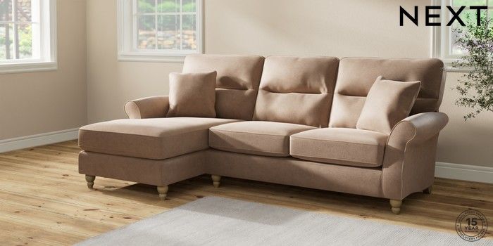 7.2.10 Ashford Highback Medium Sofa Chaise - Left Hand Luxe Chenille Mid Natural Low Turned - Light | Made Click here to use our website with more accessibility support, for example screen readers